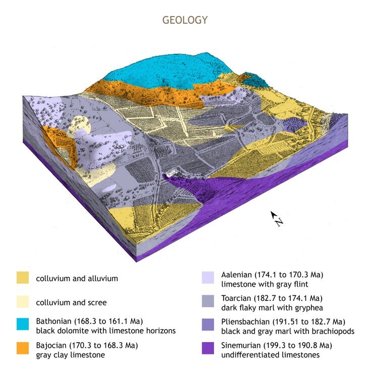 Aumèdes, which takes its name from the Occitan "aumets" or "aumedas”, meaning “elms”, is the oldest estate of the family. The Gallo-Roman remains discovered there attest of a farming activity going back for least two thousand years. The vineyard, planted on a south-facing hillside, covers 40 hectares of terraced plots between the garrigue scrubland and the village of Bizanet. On the hillside, springs gush from the fossiliferous black marls that formed the bottom of the sea during the Jurassic period, more than 170 million years ago. The carignan vines, deeply rooted in the limestone-clay soil, give round and powerful wines. The château, built on the rock, shelters a barrel cellar where the cuvée Emilien Raïssac is aged, a top-of-the-range wine made from the oldest vines of the estate.